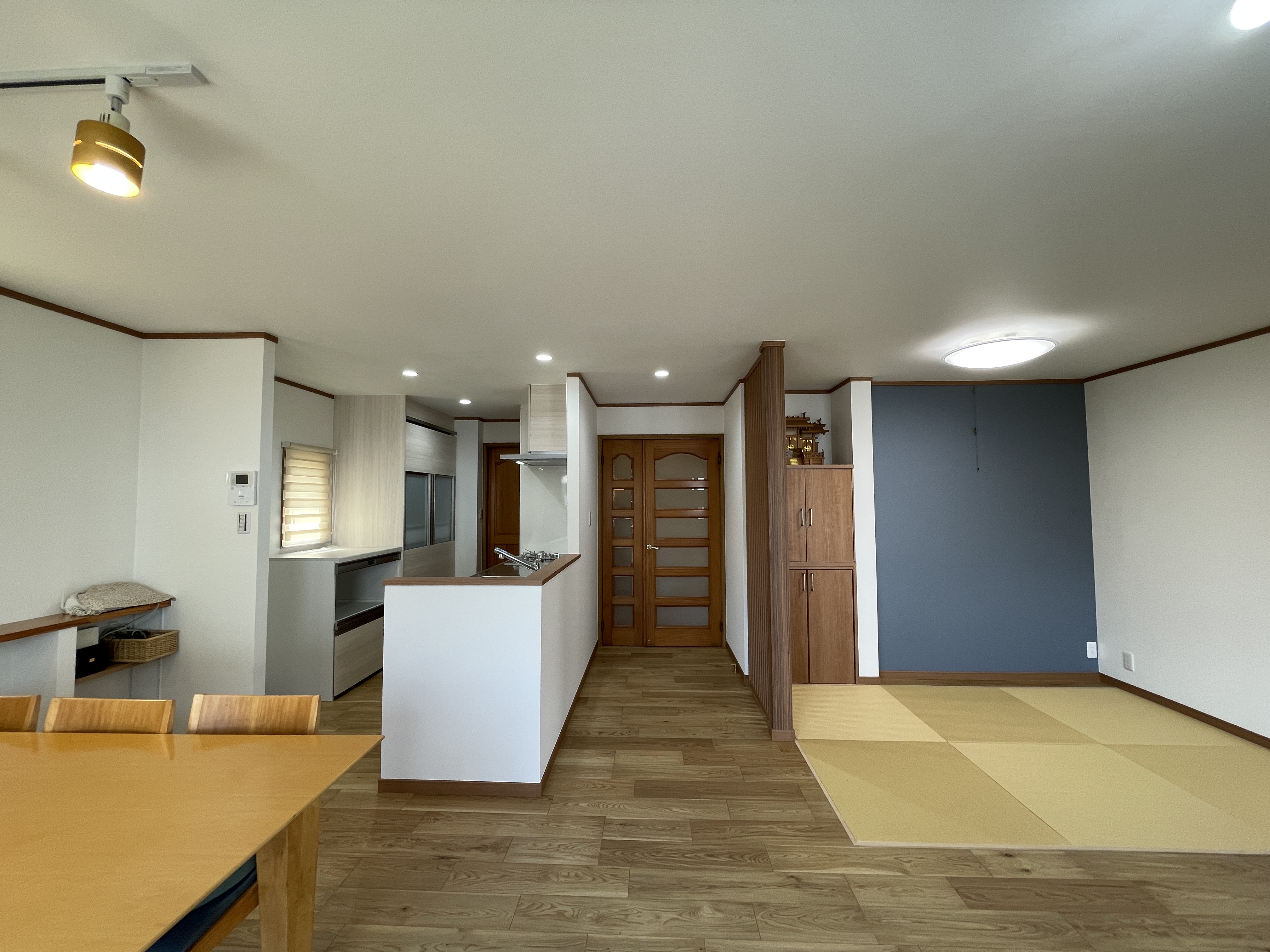 神棚とお仏壇は造作収納を作成し、畳のスペースも確保しました。