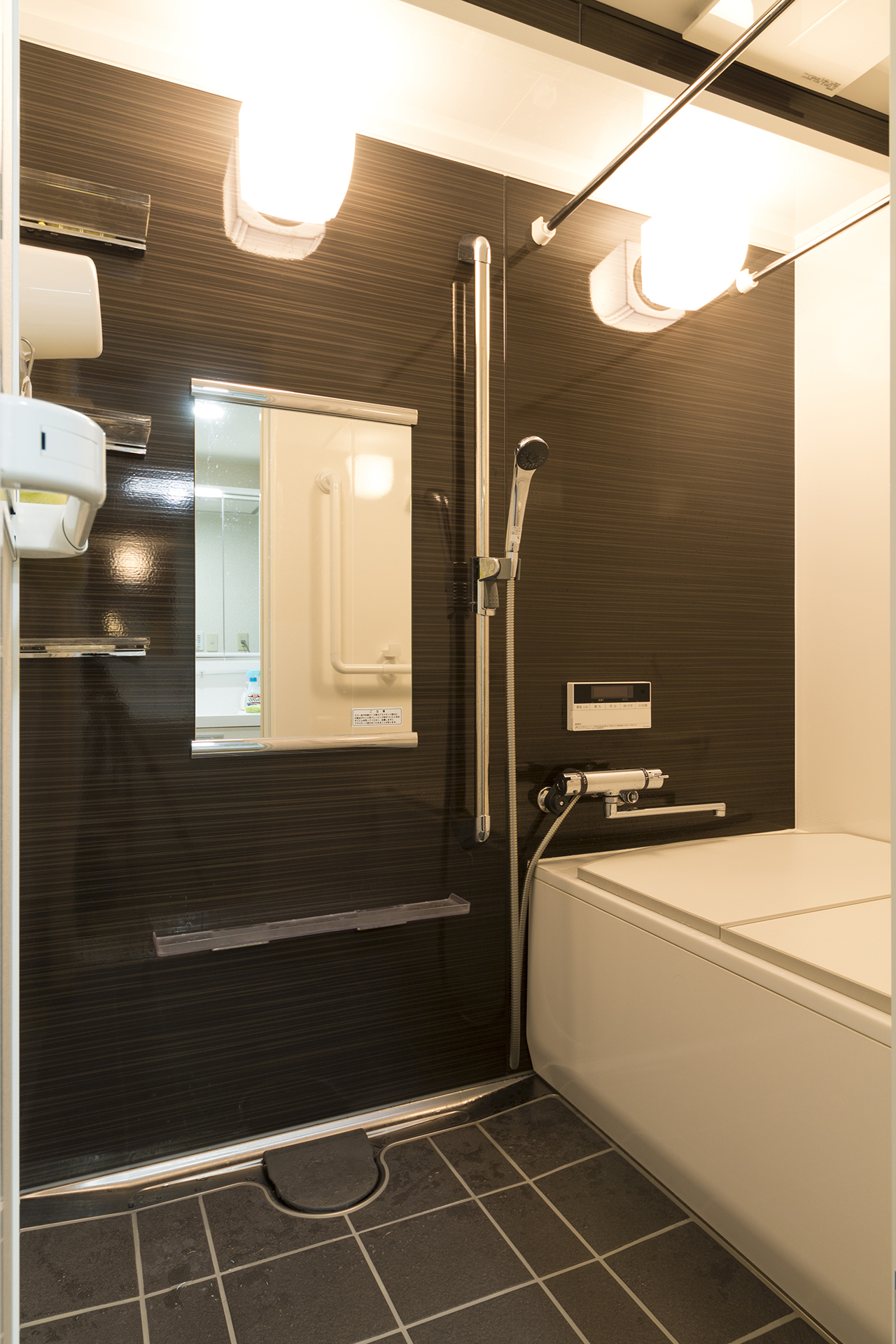くるりんポイ排水や一日の疲れをとるために調光式リラクゼーション照明システム、水栓はオーバーヘッドシャワーに打たせ湯、おしゃれなスリットミラー、フルデジタルサウンドシステムと機能満載です。