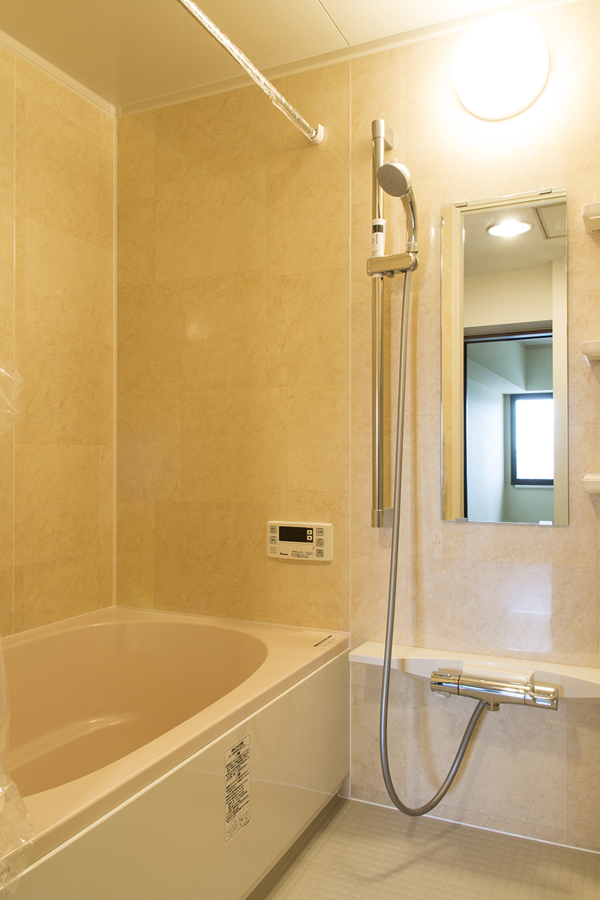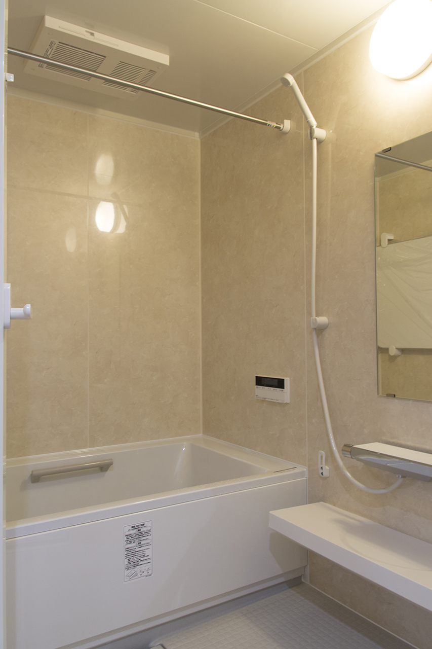 浴室はマンション用ユニット リクシル・リノビオに入れ替え。既存ユニットより入口段差が小さくなりました。