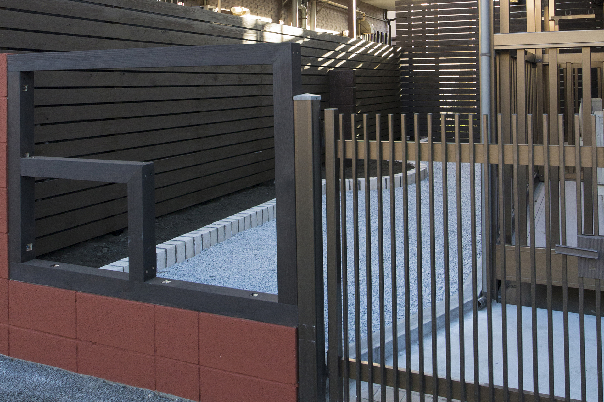 駐輪スペースを兼ねたお庭もお洒落に整えました。