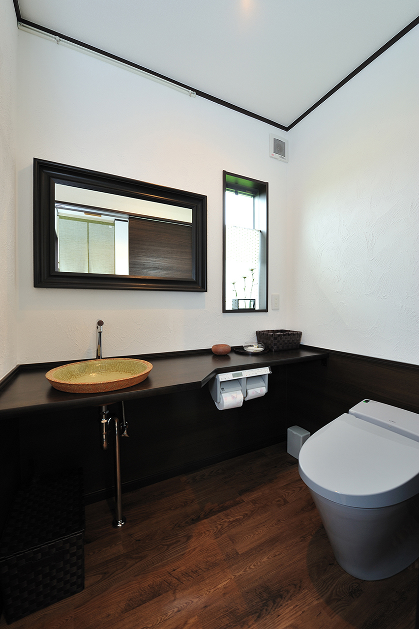 トイレはタンクレスに手洗いのカウンターで上手にスペースを使用し使いやすさもアップ。